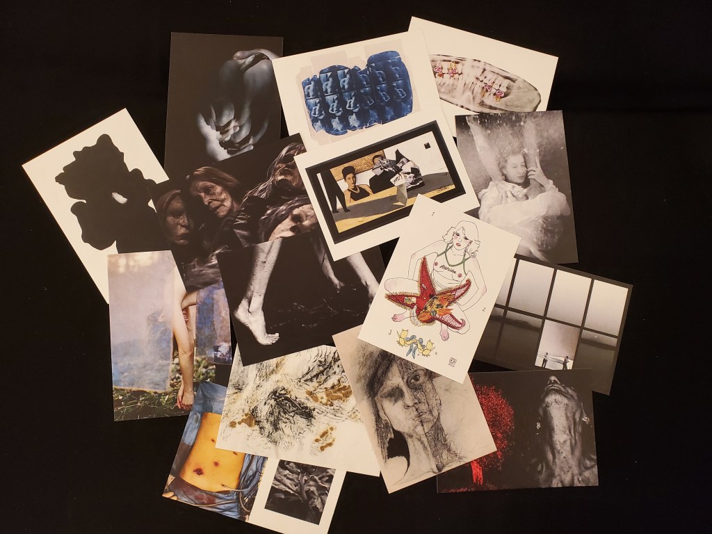 Le coffret compte 15 cartes postales cartonnées des artistes du collectif : Maria Clark, Fanny Gosse, Tamina Beausoleil, Géraldine Villemain, Amélia Fouillen, Louise Dumont, Vanda Spengler, Louise A. Depaume, Elisabette Zelaya, Sébastien Layral, Loredana Denicola, Caroline Polikar, Mila Nijinsky, Francesca Sand, Axelle Remeaud.